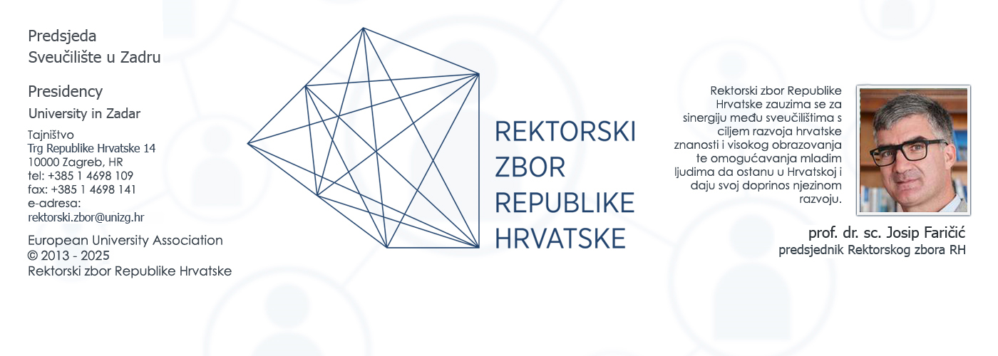Prof. dr. sc. Josip Faričić, rektor Sveučilišta u Zadru novi je predsjednik Rektorskoga zbora u akademskoj godini 2025./2026. Zamjenik predsjednika Rektorskoga zbora je rektor Sveučilišta u Dubrovniku prof. dr. sc. Nebojša Stojčić.